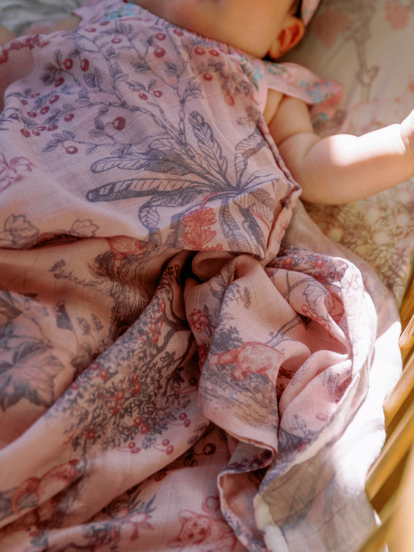 Soft Bamboo Swaddle Fruit Toile (Purple/Pink)
