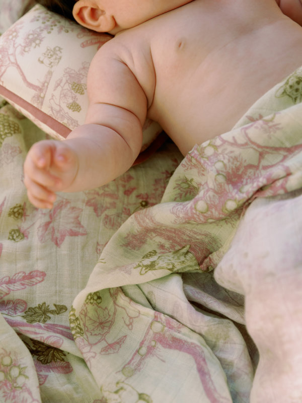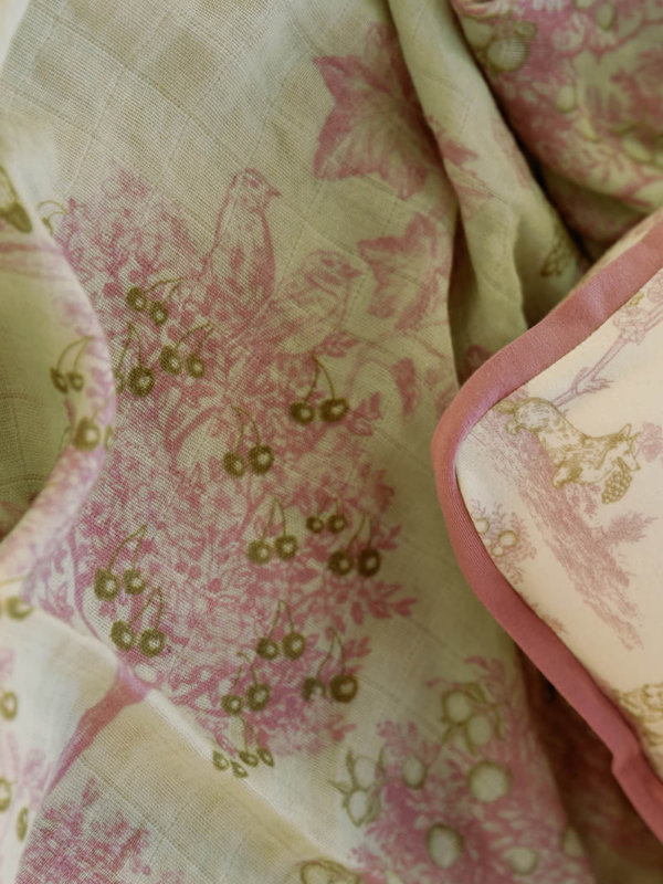 Soft Bamboo Swaddle Fruit Toile (Green/Pink)