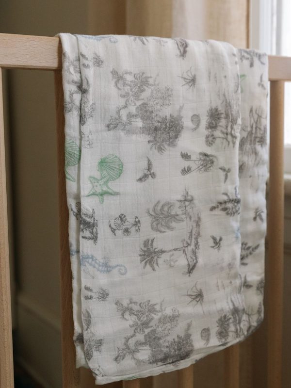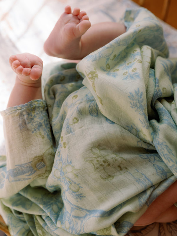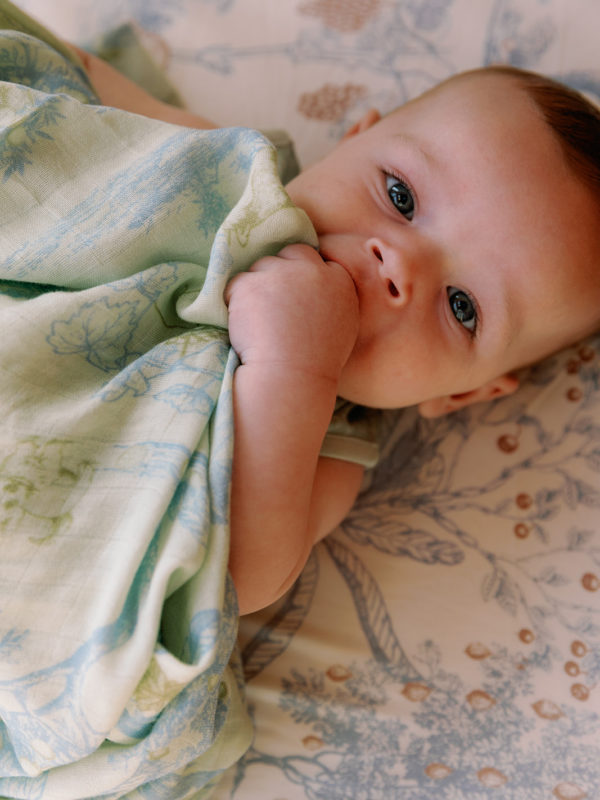 Soft Bamboo Swaddle Fruit Toile (Green/Blue)