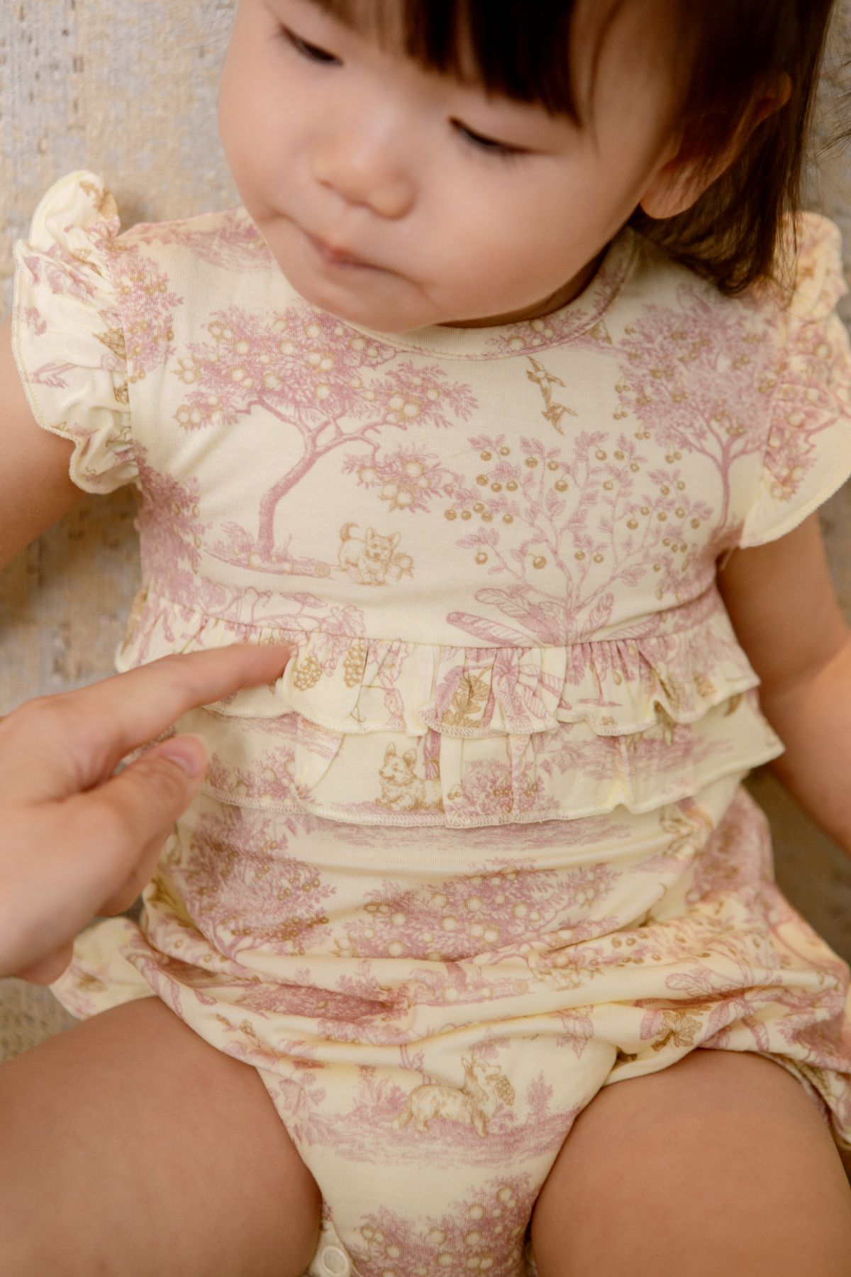- Diaper Convenience: With a bottom snap closure, this romper provides diaper coverage and facilitates hassle-free diaper changes, keeping both style and practicality in mind.