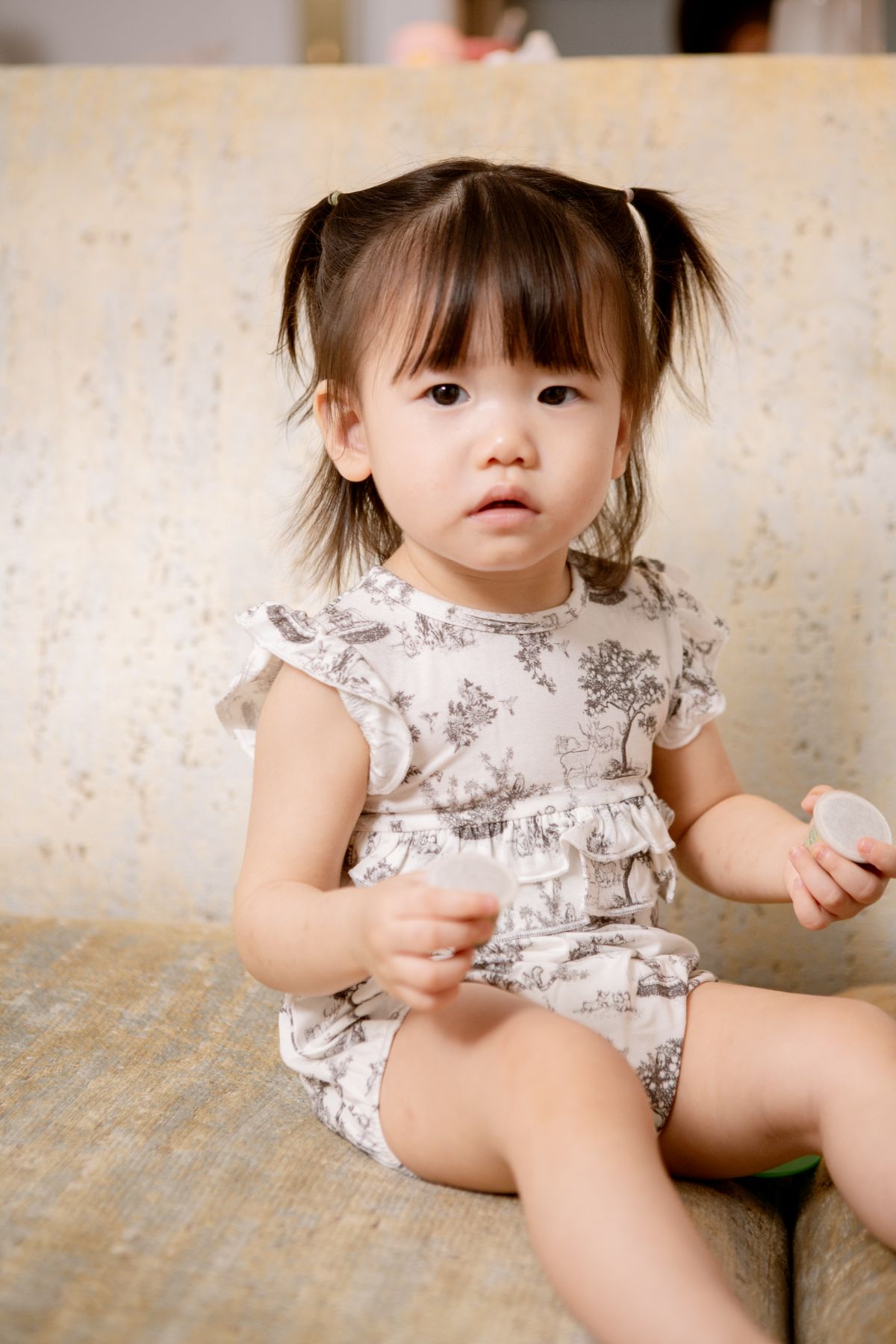 - Diaper Convenience: With a bottom snap closure, this romper provides diaper coverage and facilitates hassle-free diaper changes, keeping both style and practicality in mind.