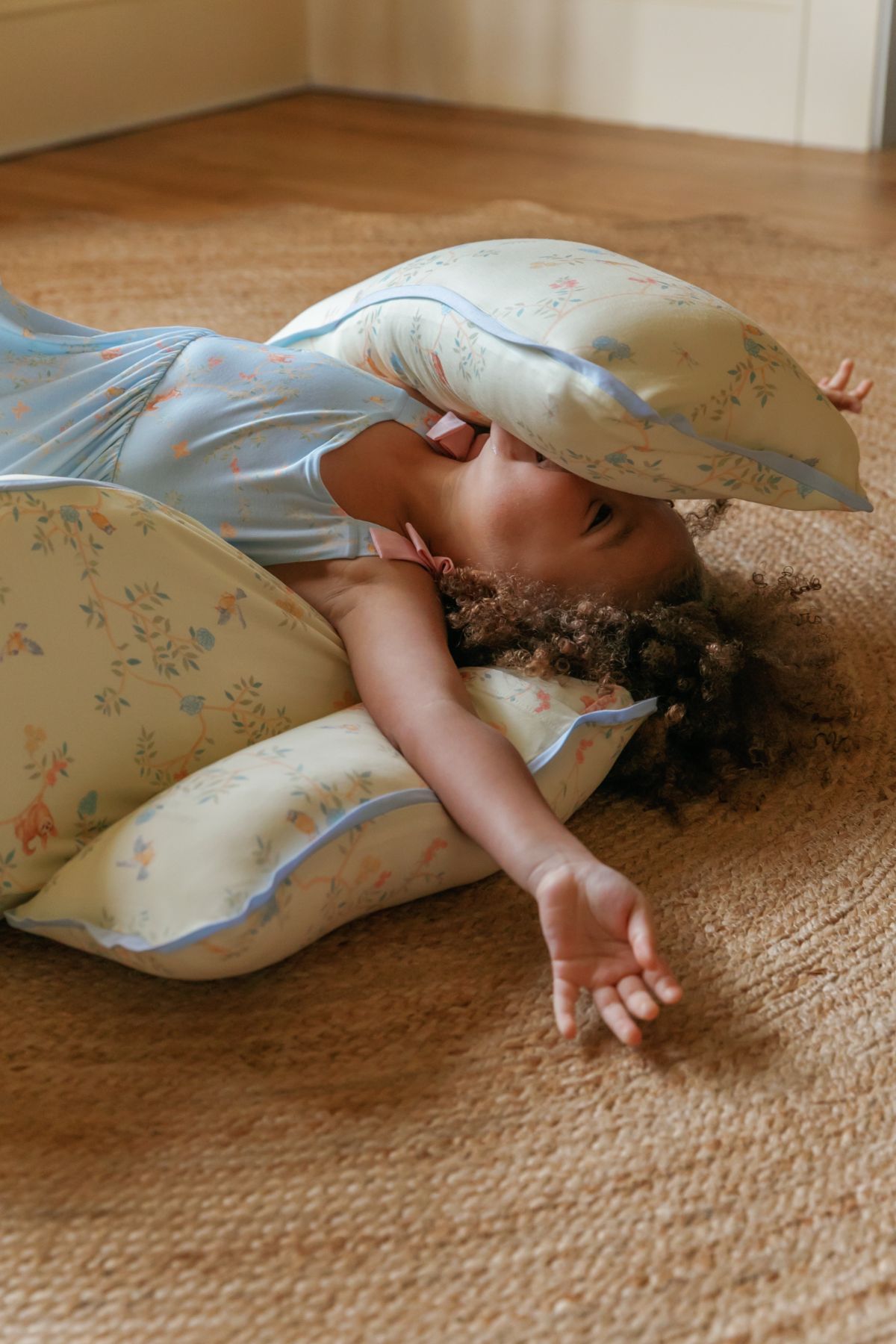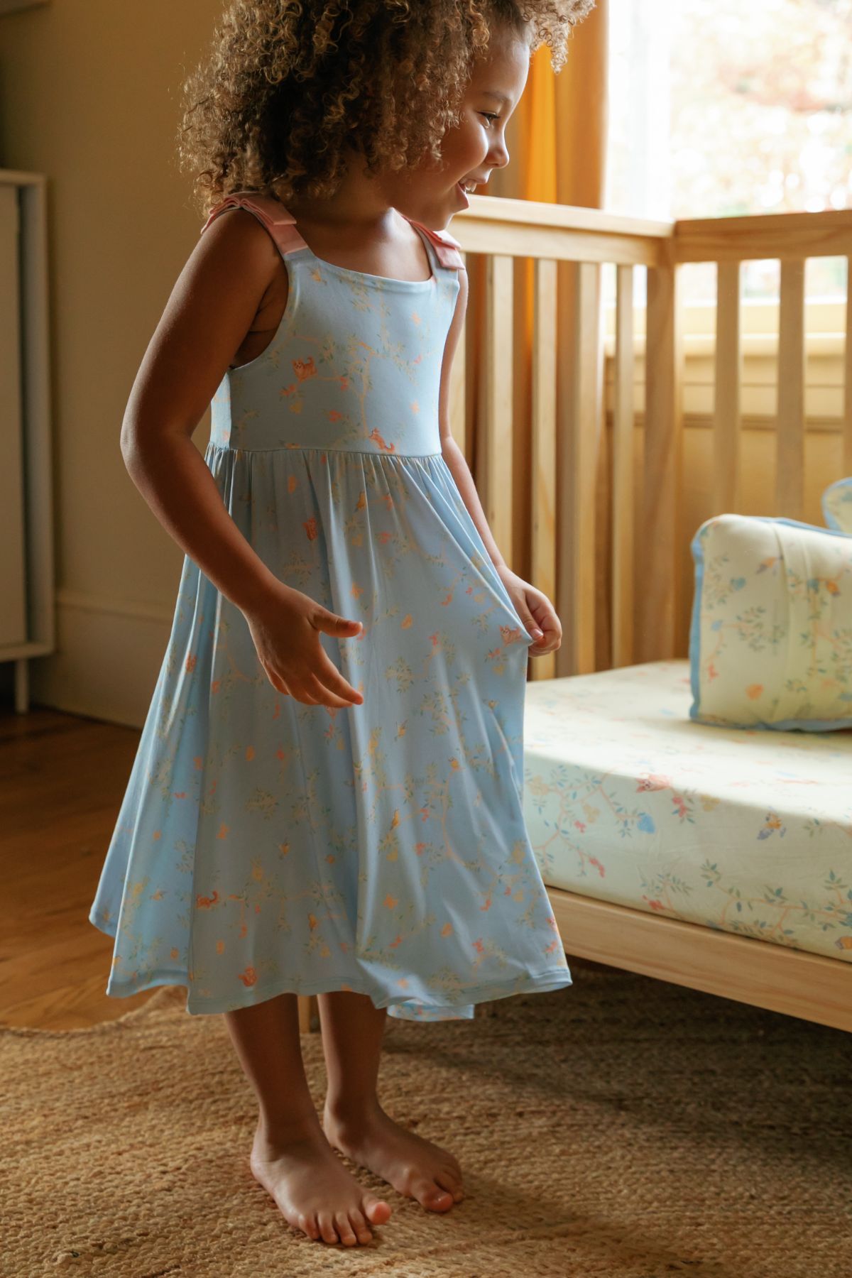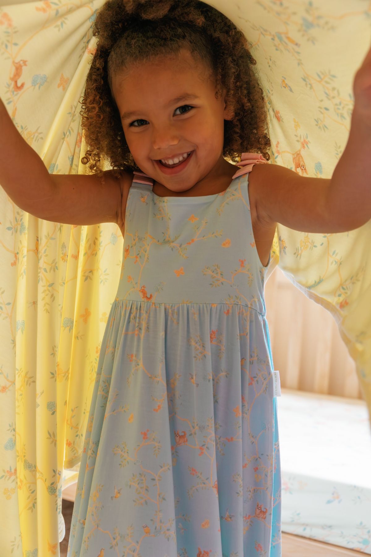 The Chinoiserie Ribbon Flare Dress features our signature square neckline framed with two sweet fixed ribbons that never come undone. Crafted in our soft, breathable fabric, the dress falls into a graceful A-line flare that’s perfect for twirling. The delicate Chinoiserie print brings an heirloom touch to everyday moments, making this a beautifully versatile piece for playdates, celebrations, and everything in between.