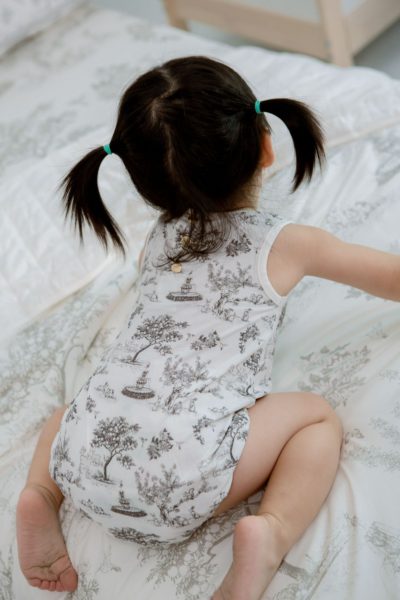 - Bottom snap closure for diaper coverage and easy diaper changes