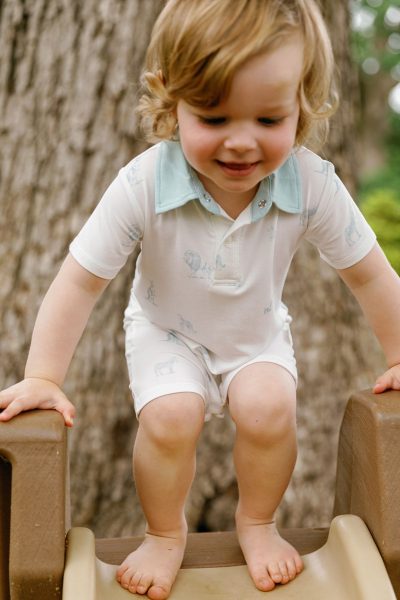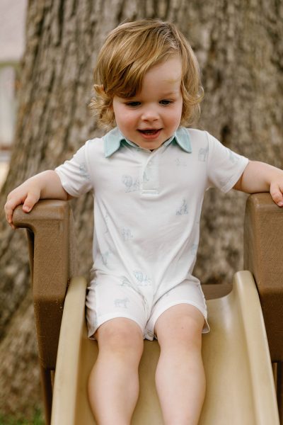 Made with our signature bamboo fabric, it features a pointed collar, button-down front, and a hint of the wild through its minimal Wild Toile print—perfectly placed lions, zebras, and Holly herself, peeking out quietly.