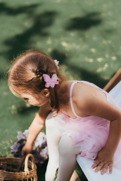 This pair of hair clips adds the perfect finishing touch to any outfit, featuring delightful designs that coordinate beautifully with the our Ballerina Dress collection. These comfortable, easy-to-wear clips are crafted to stay securely in place, keeping little ones’ hair neatly styled while adding a touch of charm and elegance.