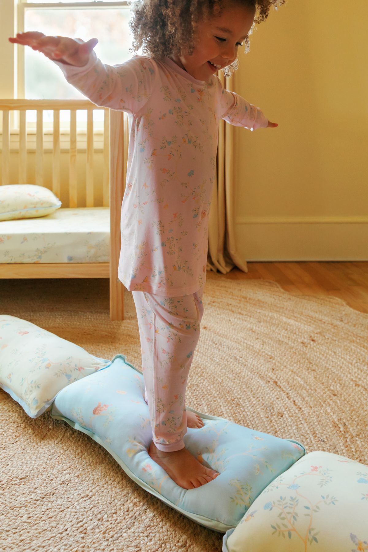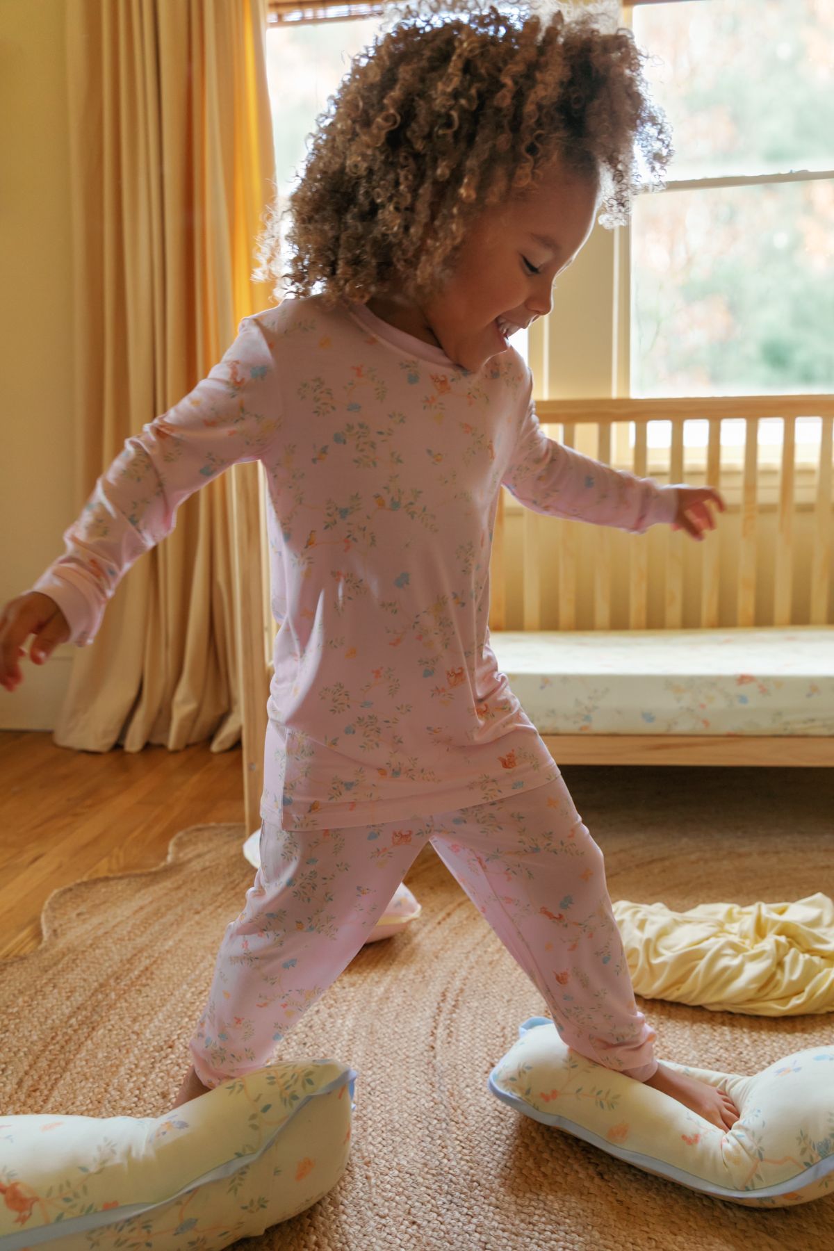 This cosy two-piece pyjama set features a soft crew-neck long-sleeve top and matching bottoms, crafted from our signature four-way stretch bamboo fabric for all-night comfort. Naturally breathable and gentle on delicate skin, it’s designed to keep little ones comfortable through bedtime and beyond.