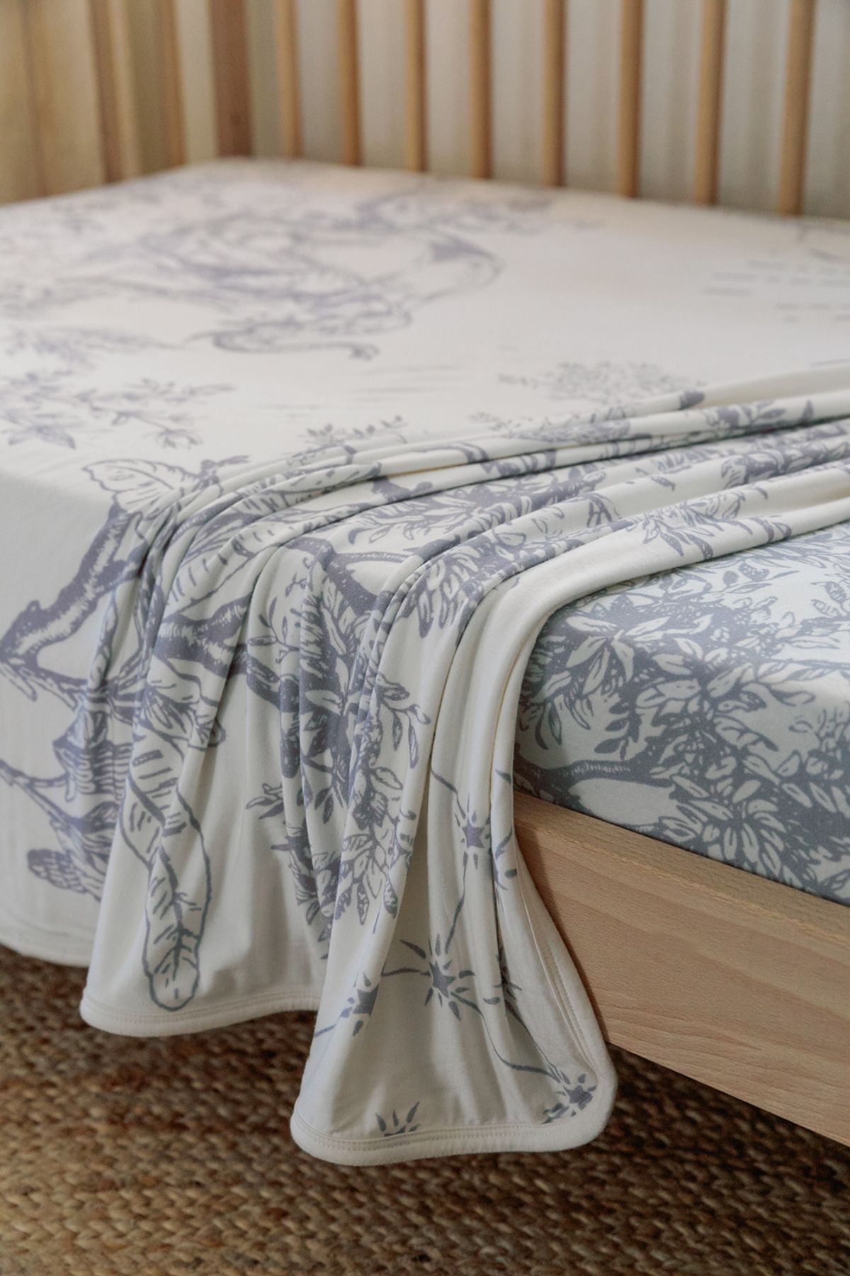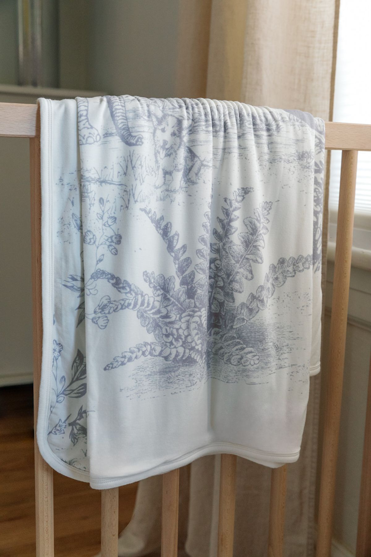 In a cozy nursery beneath a starry night, the savanna edition blanket graced the room. Families adored this blanket, not only for its tender softness and practicality but for the captivating world it unveiled within its Toile de Jouy print.