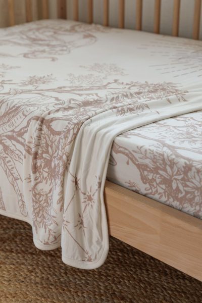 In a cozy nursery beneath a starry night, the savanna edition blanket graced the room. Families adored this blanket, not only for its tender softness and practicality but for the captivating world it unveiled within its Toile de Jouy print.