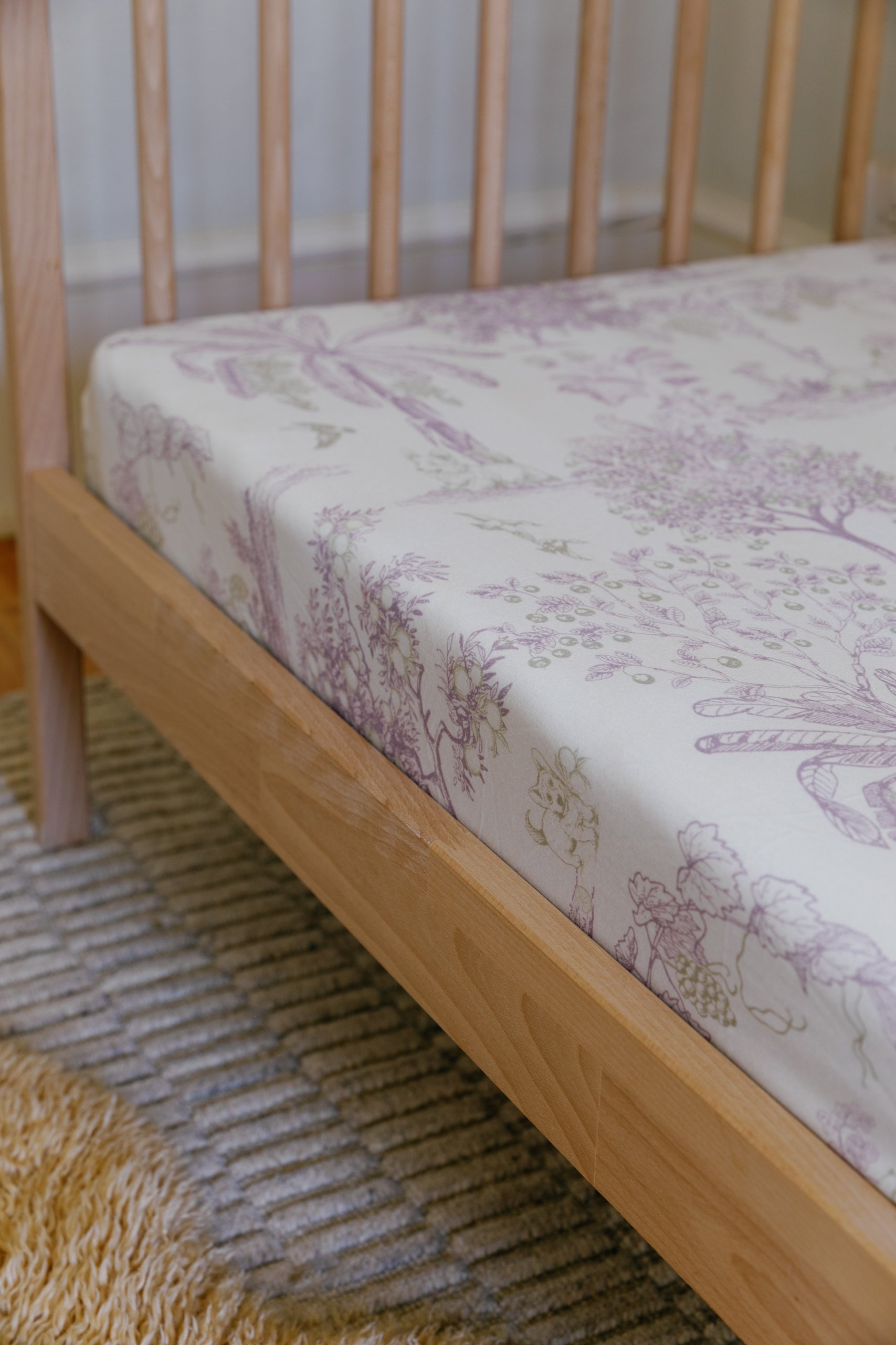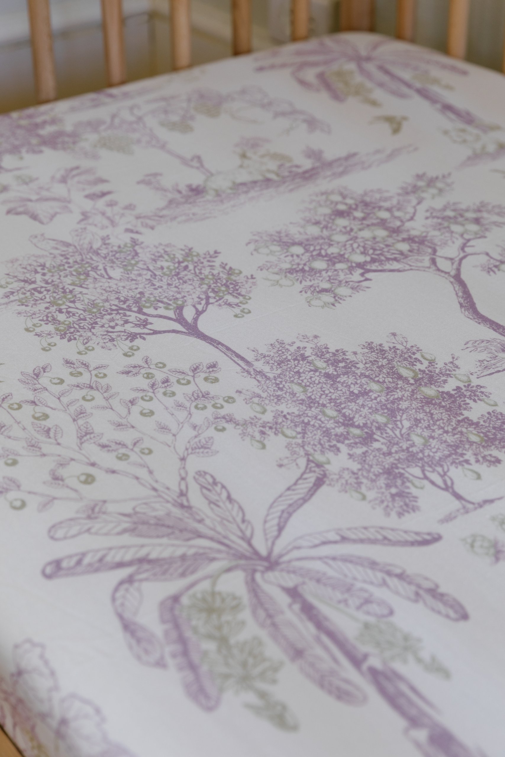 Luxe Bamboo Crib Sheet – Fruit Toile (Grape)