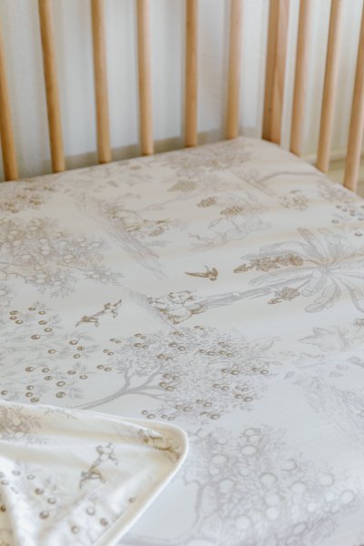 Now, you can bring a piece of this enchanting adventure into your child’s nursery with our Luxe Bamboo Crib Sheet in the all-new dual-tone Toile de Jouy Fruit Toile Edition. Featuring Holly amid the lush orchard, this crib sheet provides comfort and sparks your child’s imagination with memories of a delightful day in the great outdoors.