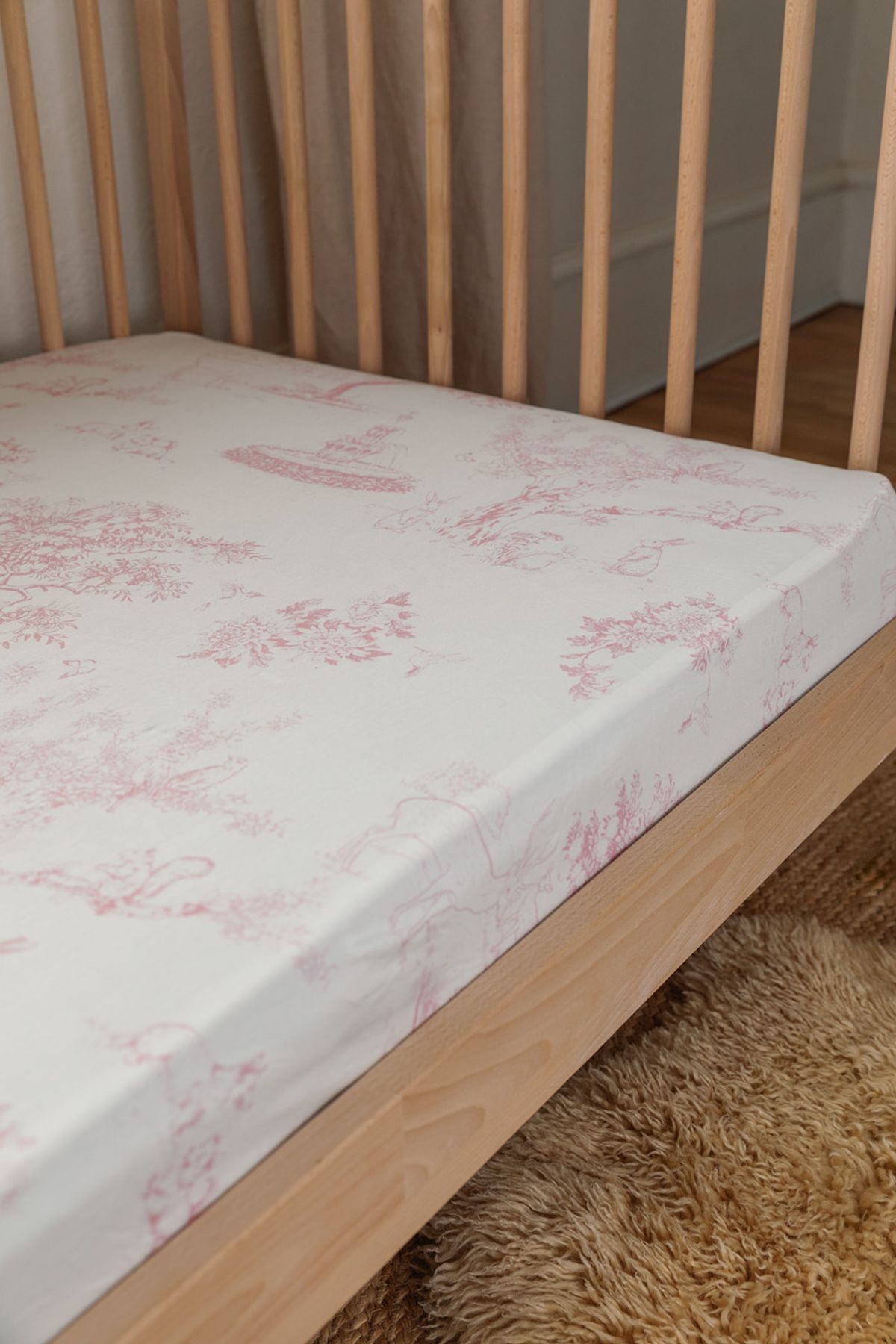 Luxe Bamboo Crib Sheet – Garden Toile (Blush Pink)