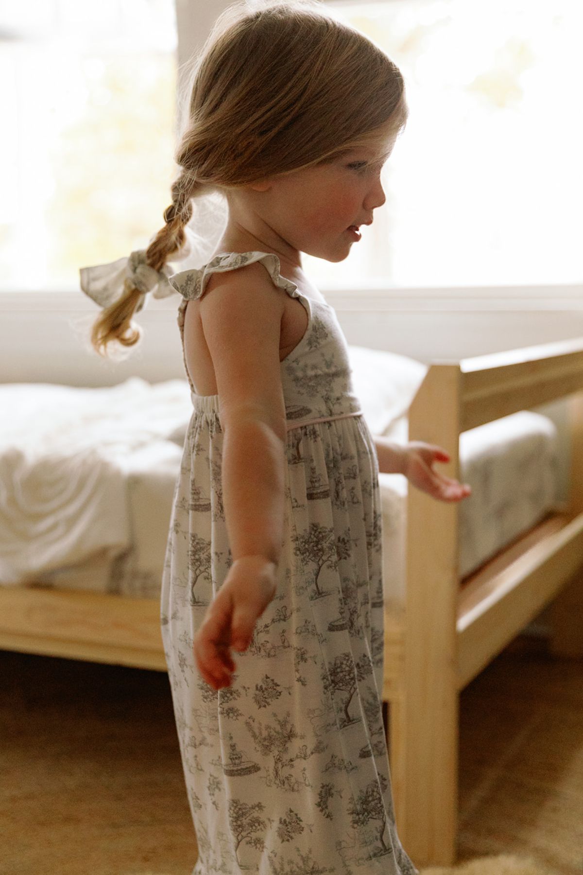 Ruffle cap sleeve dress with ruffle details on straps with signature House of Holly Toile de Jouy print is the perfect classic look for everyday wear and beyond.