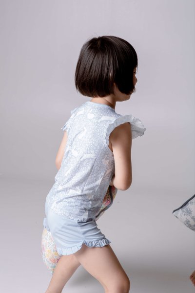 This set features a crew neck short-sleeve T-shirt with ruffle cap sleeves and a matching ruffle shorts in our four-way stretch bamboo fabric that makes for the perfect tropical weather comfort wear at home and out. Made of bamboo, it is buttery soft, lightweight, and breathable for your baby’s delicate and sensitive skin. Its luxurious texture makes it a favorite go-to set for your little ones all-day.