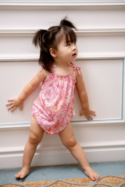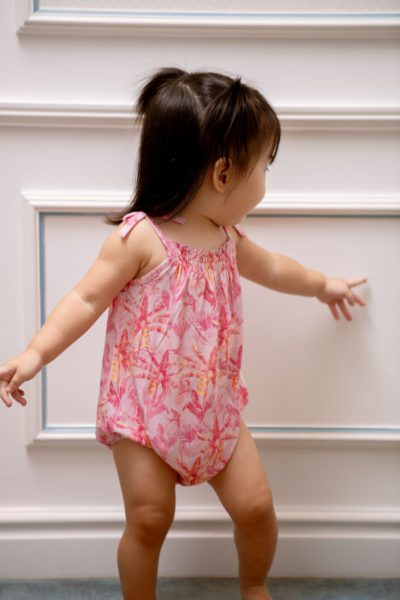 The four-way stretch bamboo fabric and elastic smocking romper grow with your toddler, ensuring a comfortable fit. It’s also cool and breezy, perfect for warm-weather outings and playdates.