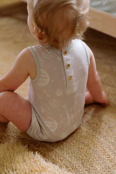 - Bottom snap closure for diaper coverage and easy diaper changes